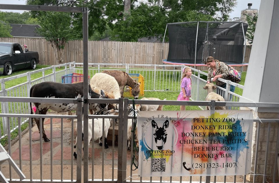 At Saint Francis Creative Farms, we pride ourselves on providing fun and safe petting zoo packages for all ages to play, explore, and celebrate. Serving Houston, TX, and the surrounding areas, our petting zoo is designed to stimulate imagination and promote physical activity. With our kid's birthday party packages, we offer various engaging activities catering to different interests and abilities. There is something for everyone, from paint parties and kid's tea parties to pony packages and mobile petting zoo services to employee appreciation parties. We also specialize in bringing unique and interactive experiences to corporate events, making company gatherings, team celebrations, and client appreciation days unforgettable. Our dedicated team ensures that all equipment is regularly inspected and maintained to ensure maximum safety. We strive for excellence in everything we do because your satisfaction is our top priority! If you're looking for exciting party activities and a party page committed to delivering outstanding results at competitive prices, contact Saint Francis Creative Farms today to discuss how we can help meet your needs!